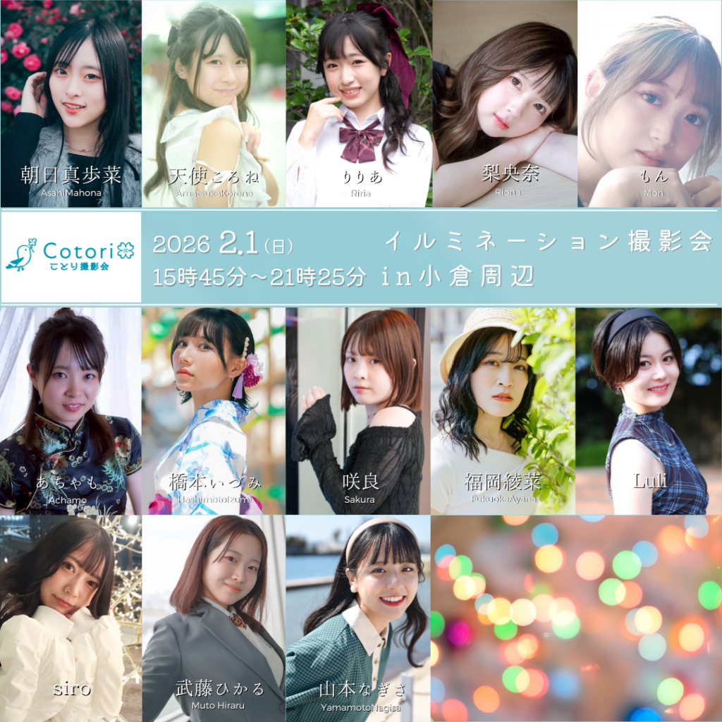 ことり撮影会では福岡を拠点とし、カメラについて初心者の方でもベテランの方でも楽しめる気兼ねなく楽しめるアットホームな撮影空間を大切にしています。