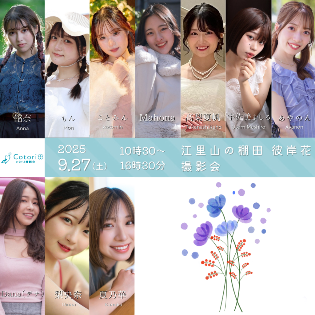 \ご予約受付開始しました/ 9月27日(土)江里山の棚田 彼岸花 撮影会 江里山の棚田 彼岸花 撮影会 ※予約受付中 <出演モデル> 餡奈 もん ことみん Mahona 高梨夏帆 Dana(デナ) 梨央奈 夏乃華 宇佐美…