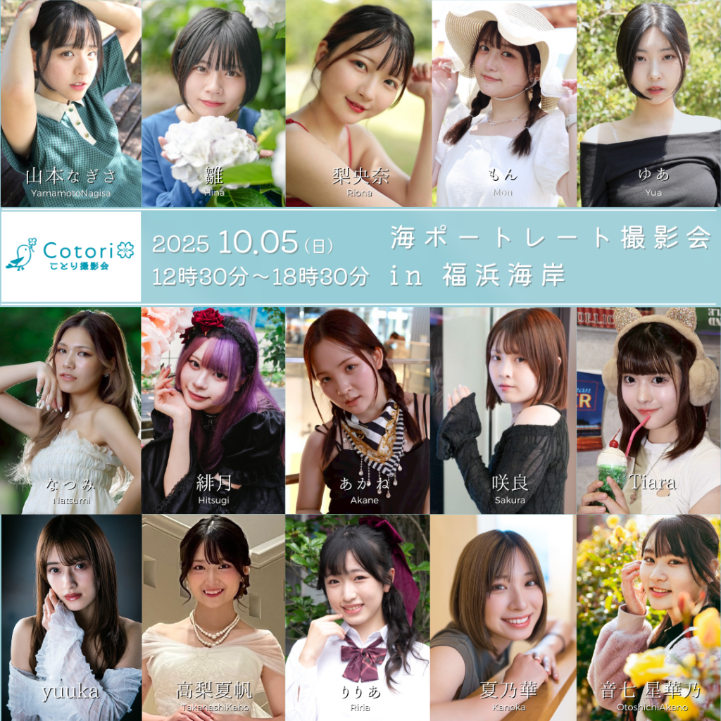 \ご予約受付開始しました/ 10月5日(日)ポートレート撮影会 in 福浜海岸 ポートレート撮影会 in 福浜海岸 【予約開始日時】9月21日(日) 21時 <出演モデル> 山本なぎさ 雛 梨央奈 もん ゆあ なつみ …