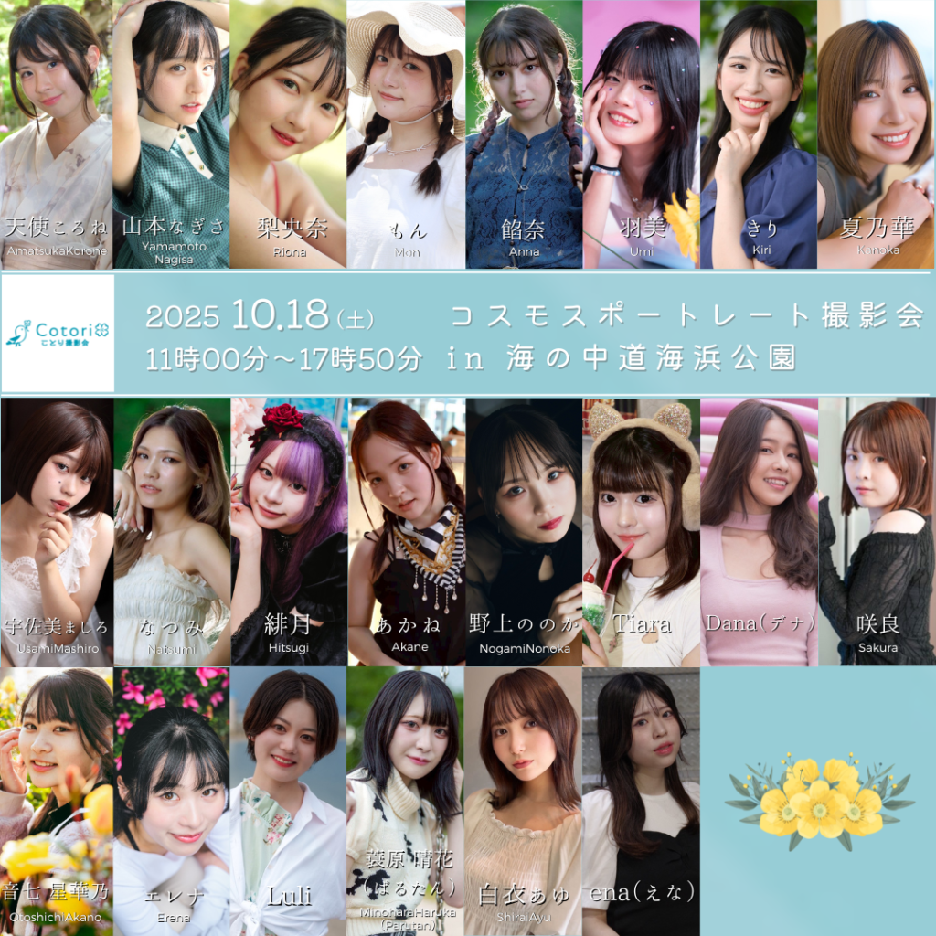【予告】 10月18日(土)コスモスポートレート撮影会 in 海の中道海浜公園 https://photo-f.cotori-pr.com/archives/events/167 <ご予約受付開始日時> 9/27(土)2…