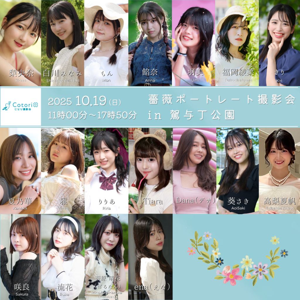\ご予約受付開始しました/ 10月19日(日)薔薇ポートレート撮影会 in 駕与丁公園 薔薇ポートレート撮影会 in 駕与丁公園 【予約開始日時】9月27日(土) 21時 <出演モデル> 梨央奈 白川みなみ もん 餡奈 …