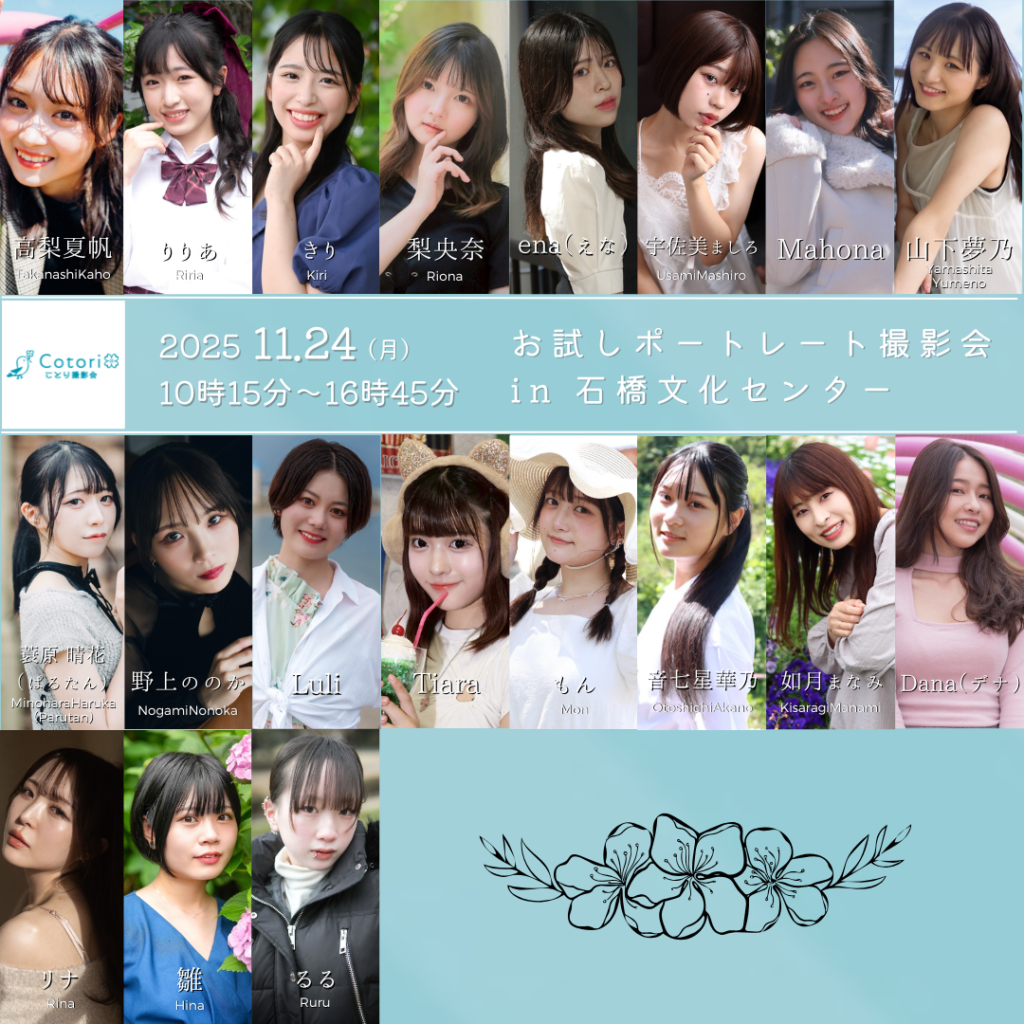 【予告】 11月24日(月)お試しポートレート撮影会 in 石橋文化センター https://photo-f.cotori-pr.com/archives/events/174 <ご予約受付開始日時> 11/8(土)21…