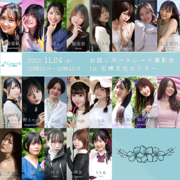 \ご予約受付開始しました/ 11月24日(月)お試しポートレート撮影会 in 石橋文 ...